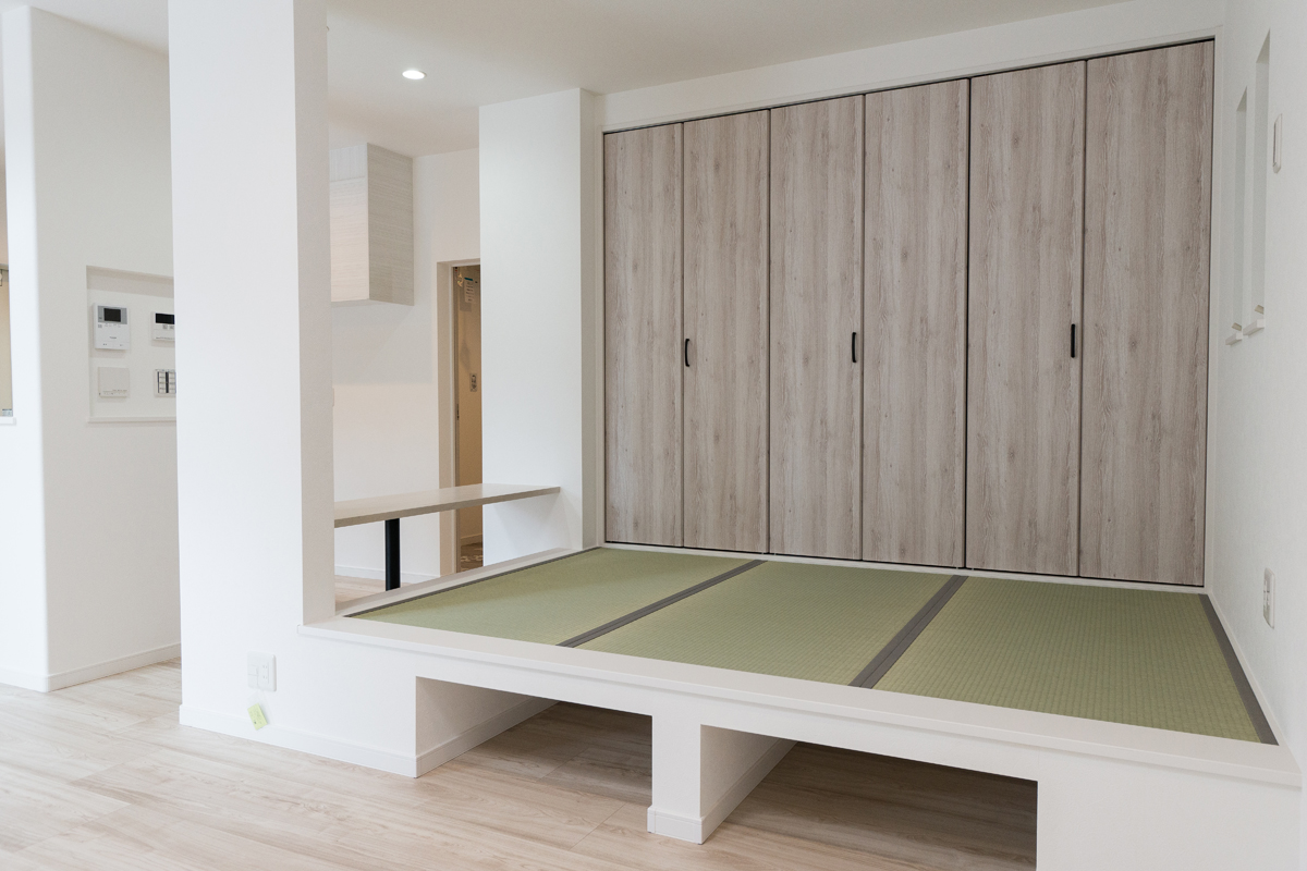 > W様邸 リビングに寛ぎの小上がり和室がある邸宅