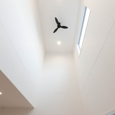 高窓から降り注ぐ自然光が、白い壁に反射して室内をより明るく開放的に見せてくれます。