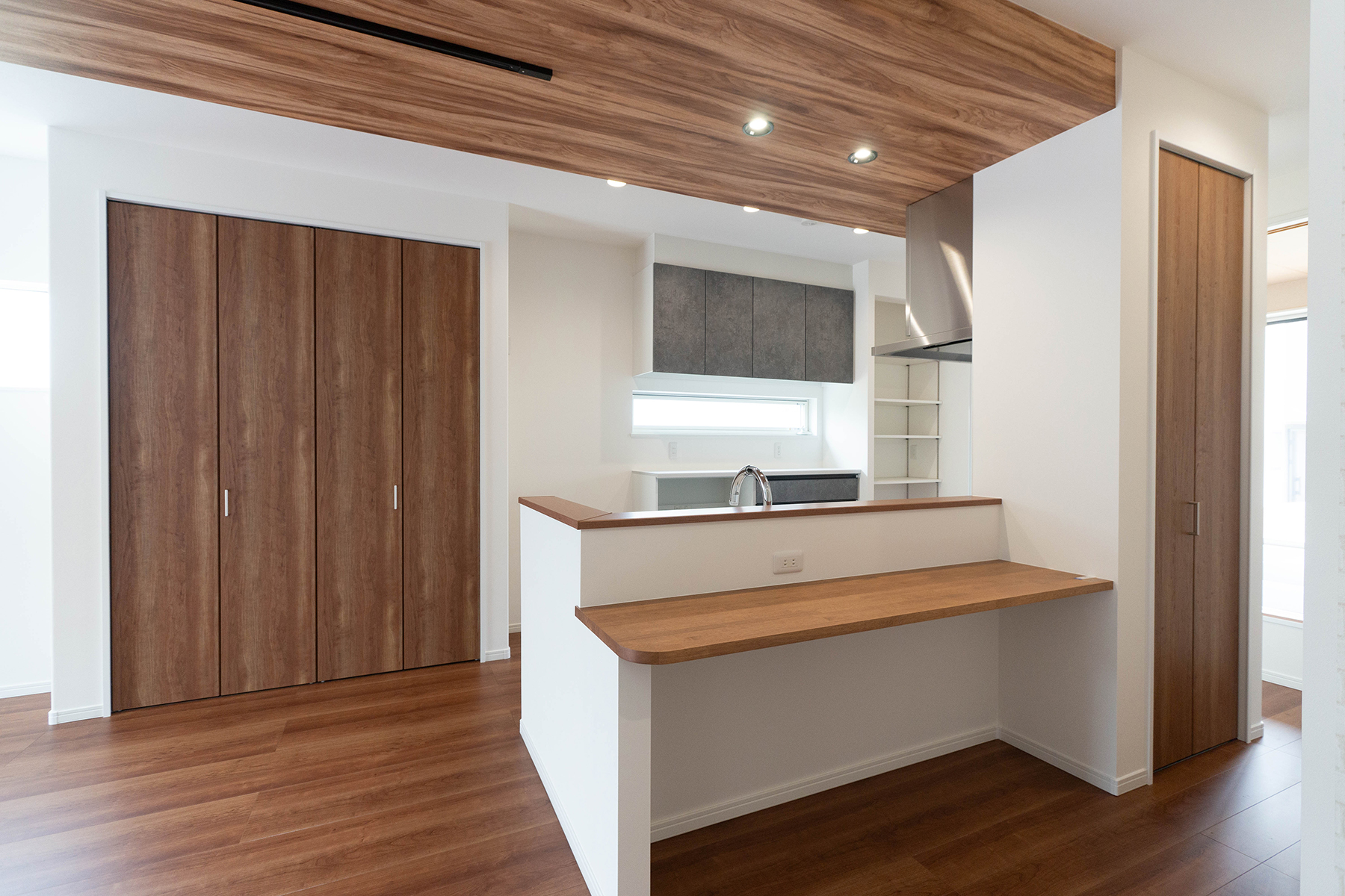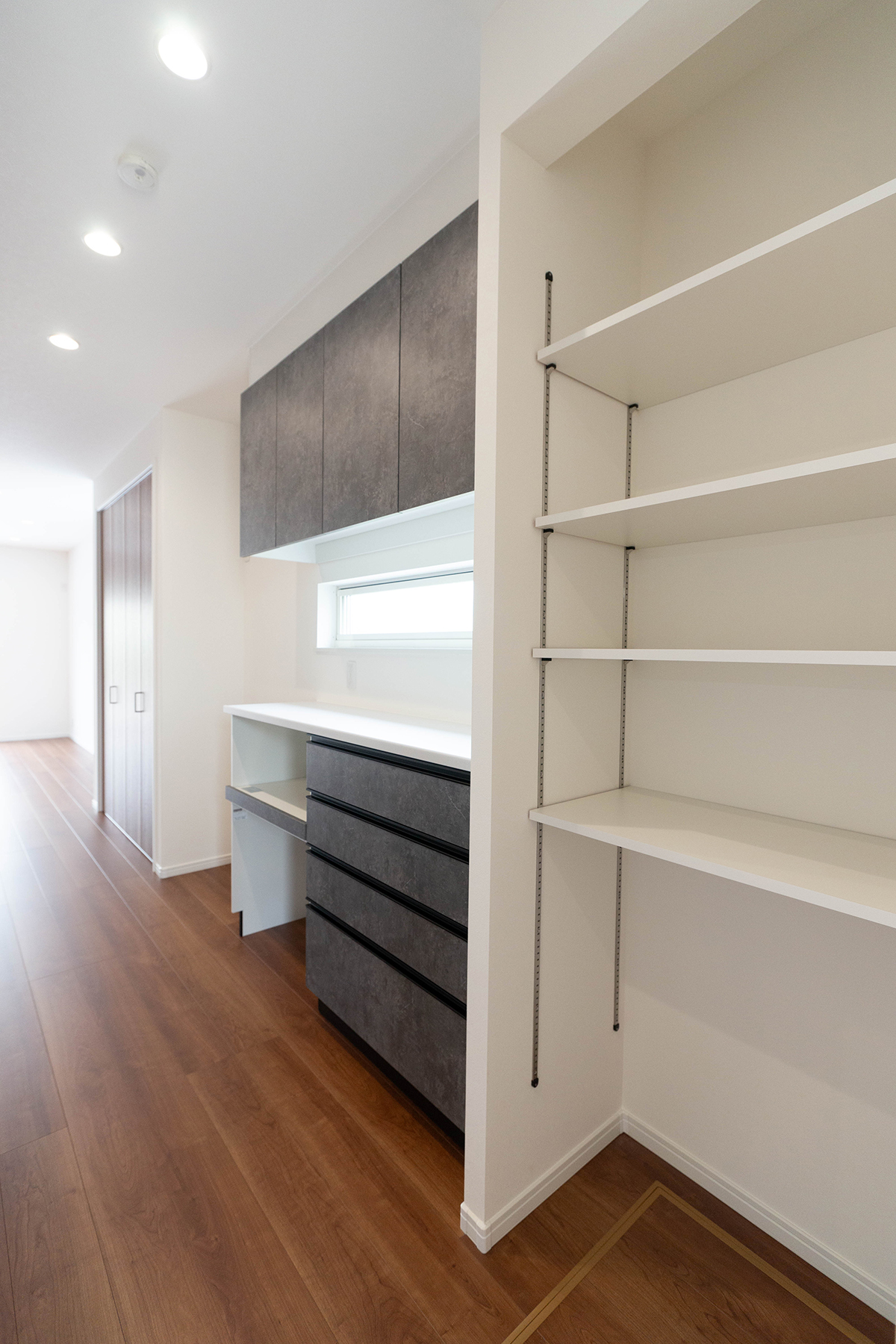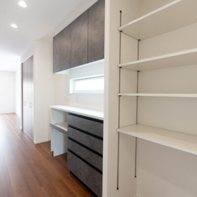 ワイドなカウンターにはコンセントを完備しており、ワークスペースやお子様の勉強コーナーとしても大活躍です。