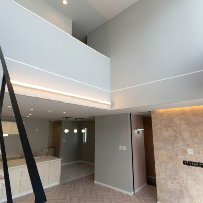 間接照明が照らす壁面の陰影や、遊び心のある色使いが住まいに奥行と個性を生み出します。