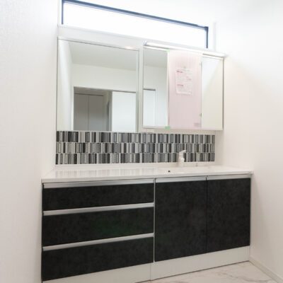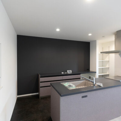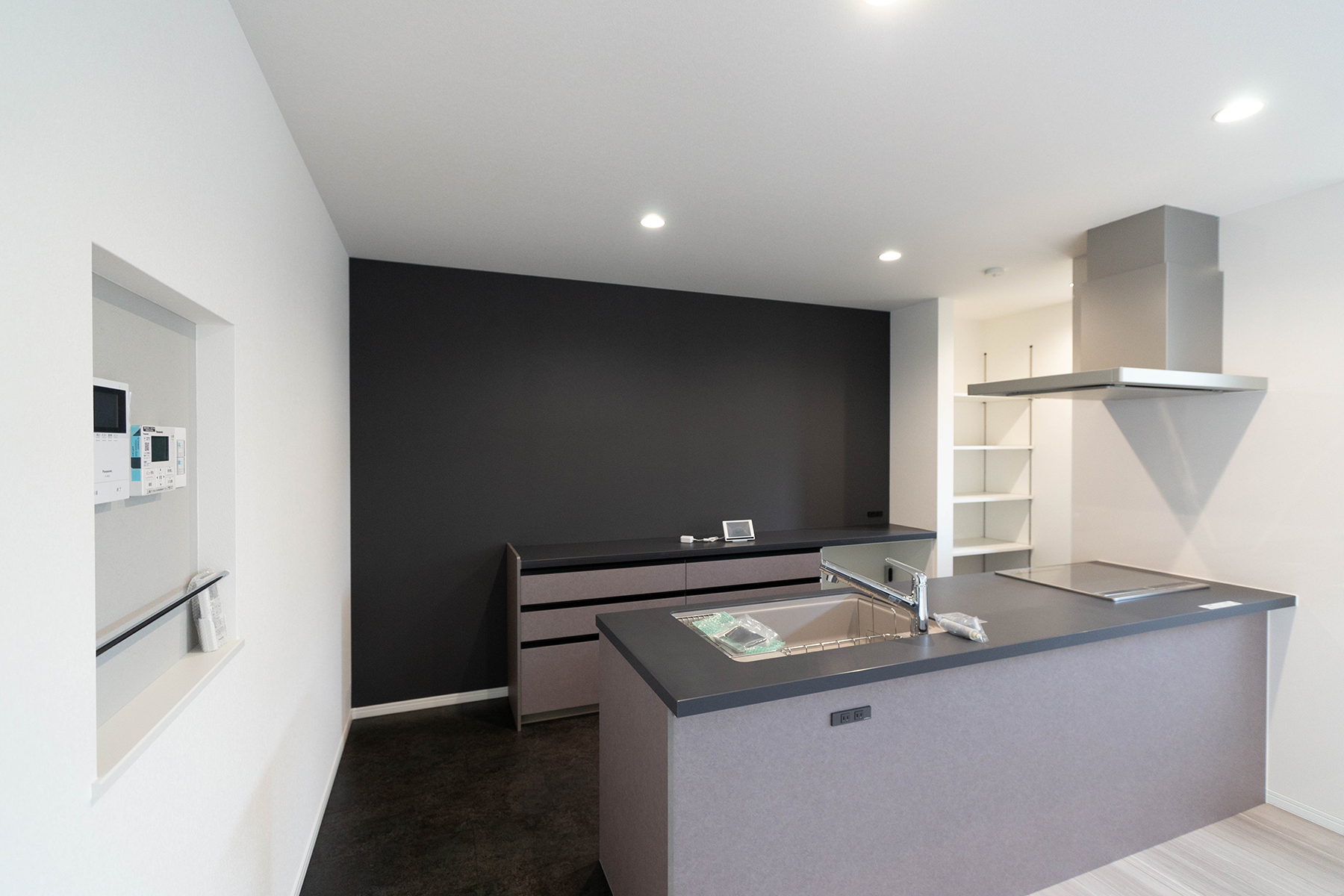 白を基調にシックな深い色をアクセントに効かせたスタイリッシュな仕上げに。