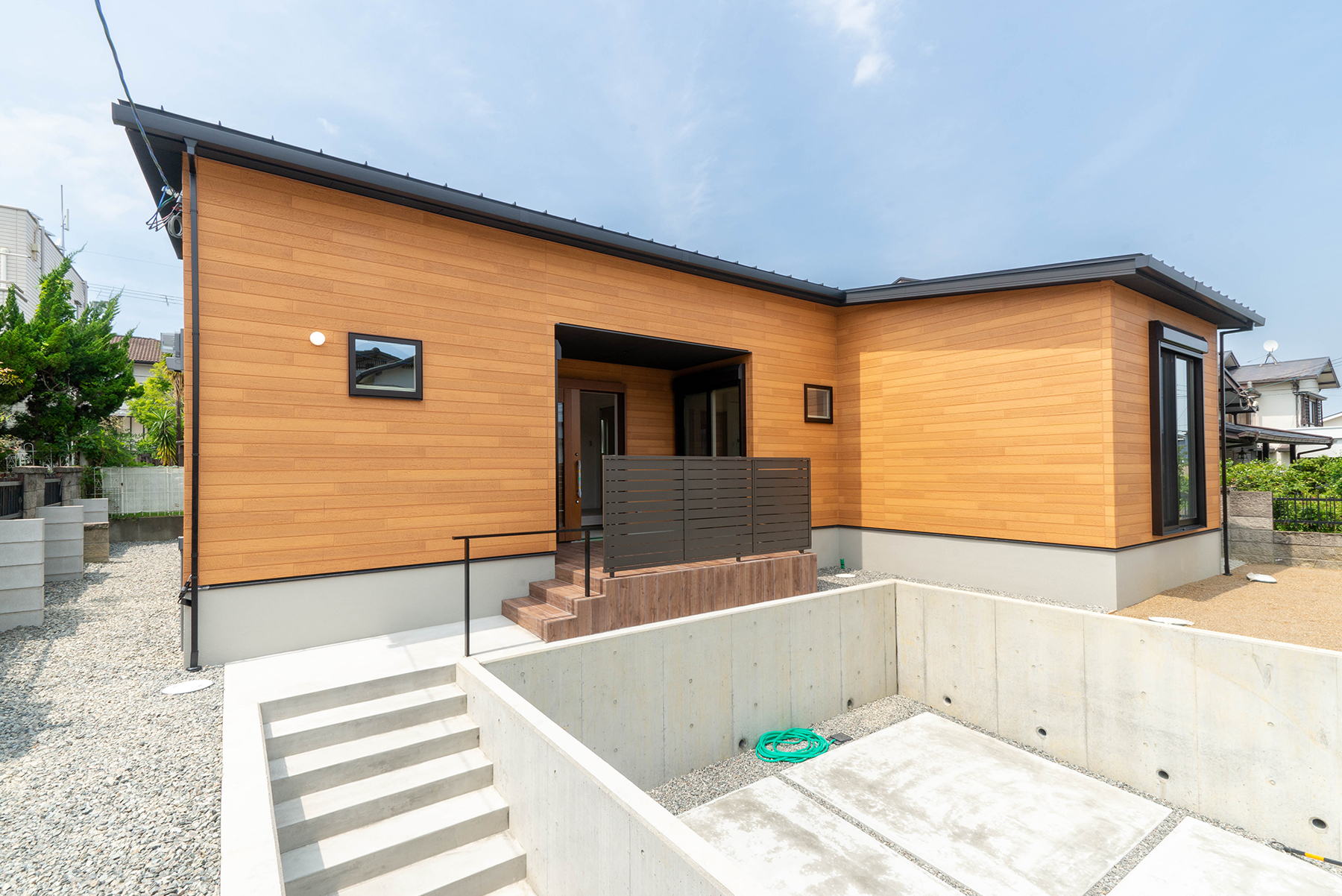 鮮やかな木目調に黒色を加えることで、全体が引き締まったスタイリッシュな外観に。