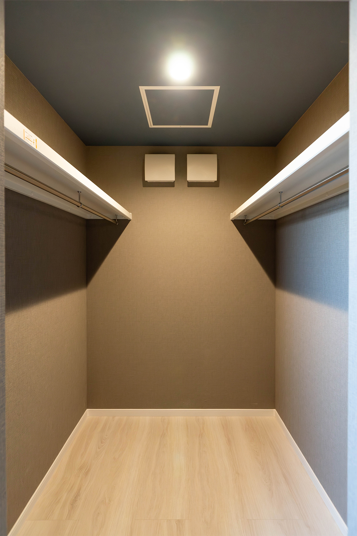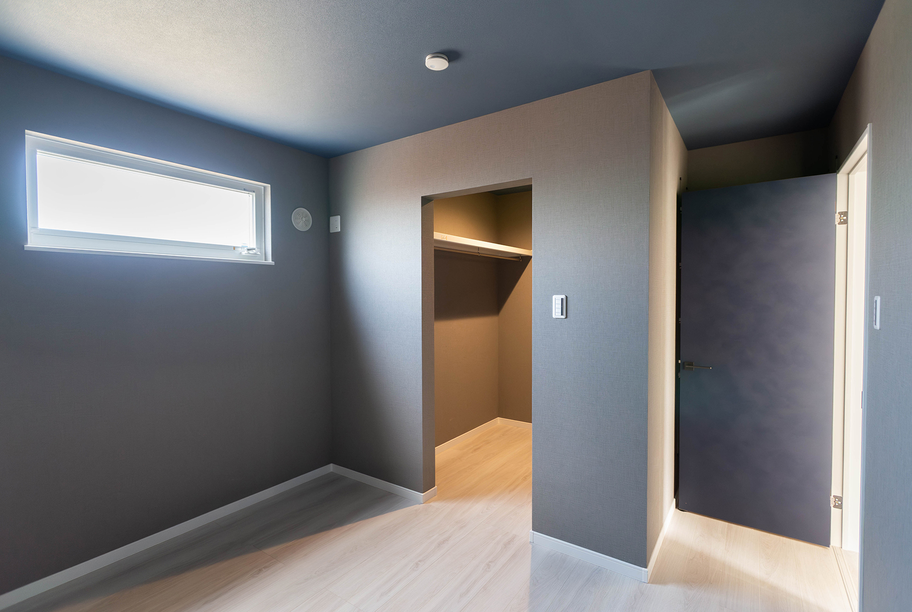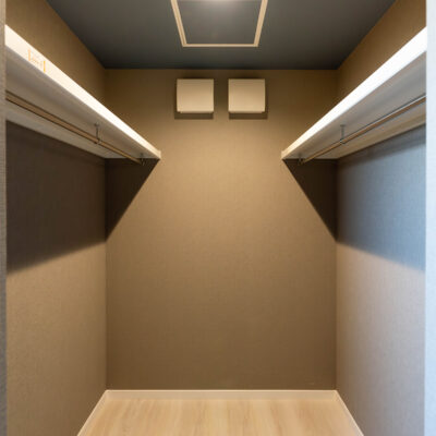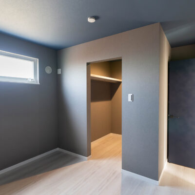 深みのある色のクロスが特徴の洋室にWICを完備。