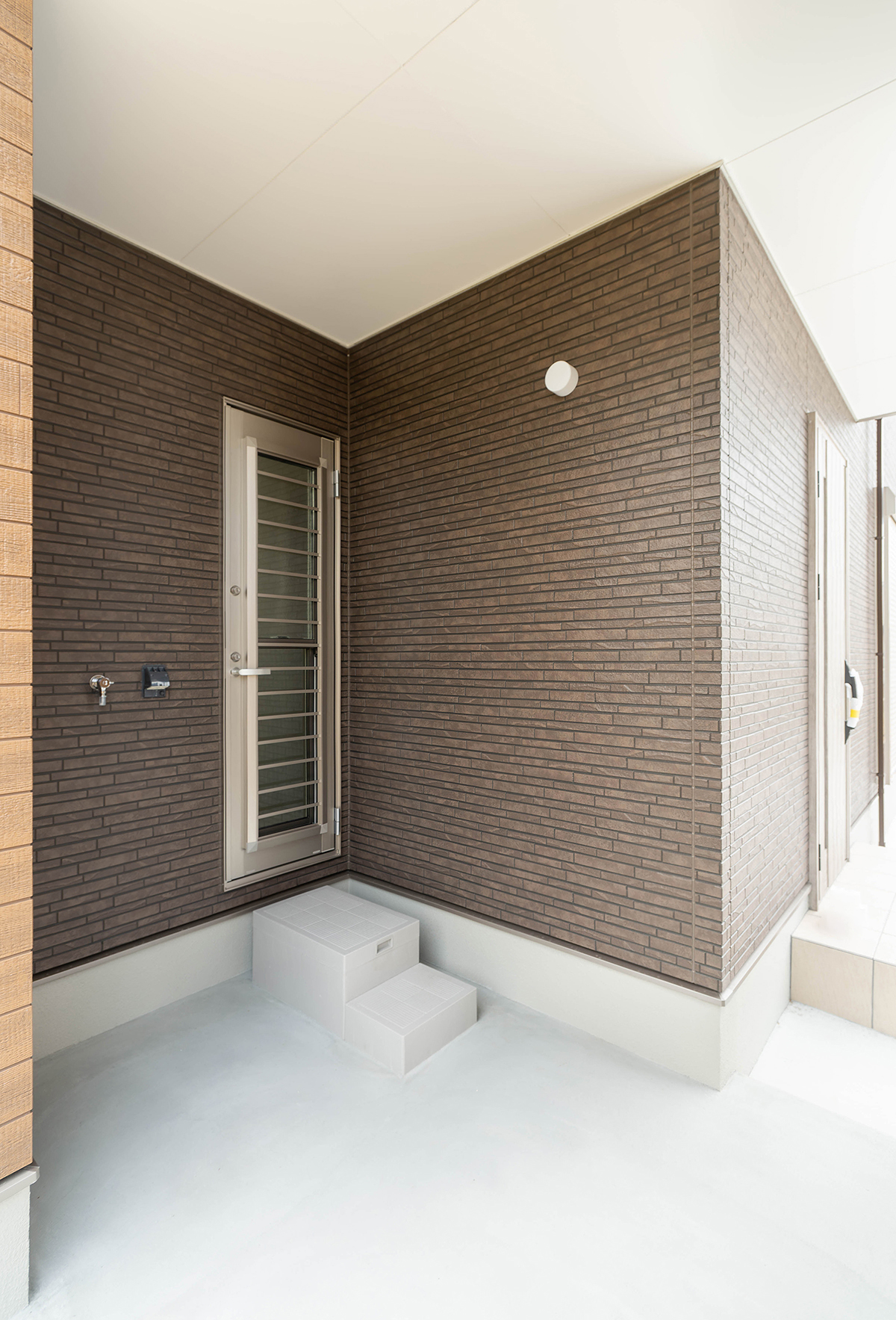 洗面所から直結する屋外にも洗濯機置き場を設け、外遊び後の衣類も室内を汚さずそのまま洗濯可能。