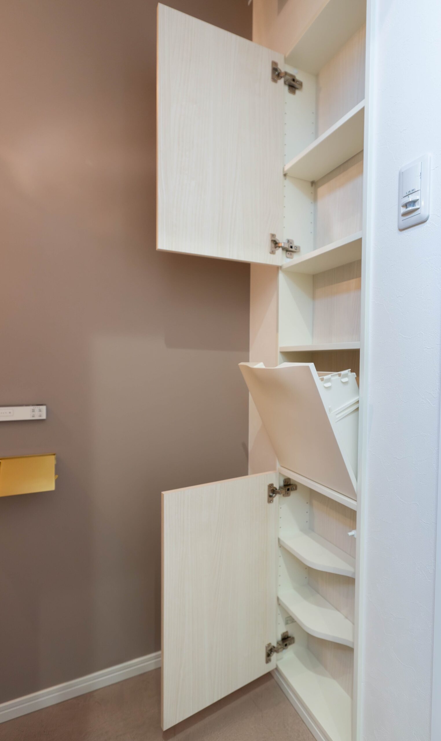 備品を扉内にスッキリ収められる、機能的なトイレ収納も魅力的です。