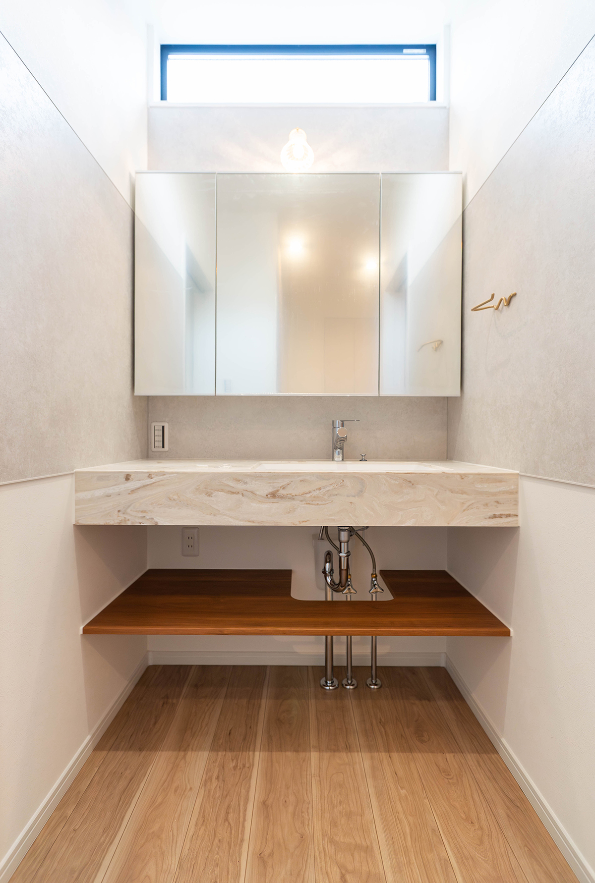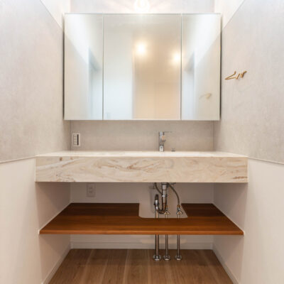 洗面室やトイレは柔らかなトーンで統一し、上品で清潔感のある空間に。