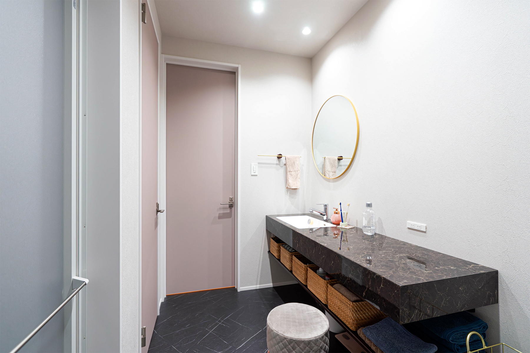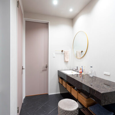 石目調の高級感漂う洗面台やシックにまとめられた落ち着きのあるトイレなど細部にまでこだわった上質な空間です。