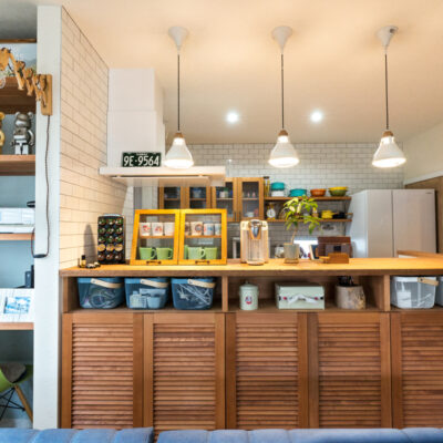 カウンターキッチンの造作は、裏側にも注目。シンク奥に調味料関係がきちんと収納できちゃいます。