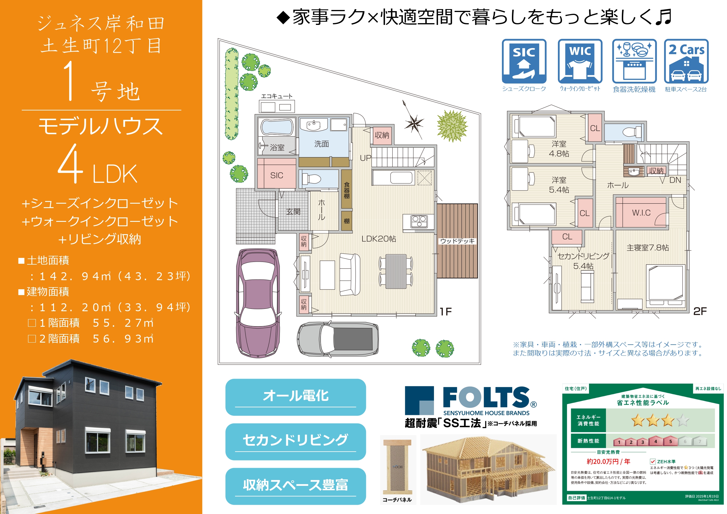 収納力に優れた間取り設計で、セカンドリビングや大容量のクローゼット、シューズインクロークなど家族それぞれの快適な暮らしを叶えます。