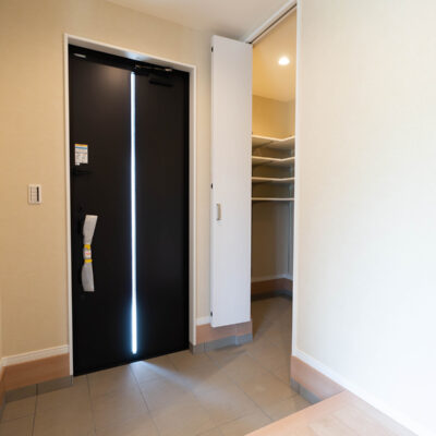 玄関にはシューズクローク付き。アウトドア用品やベビーカーの収納にも便利です。