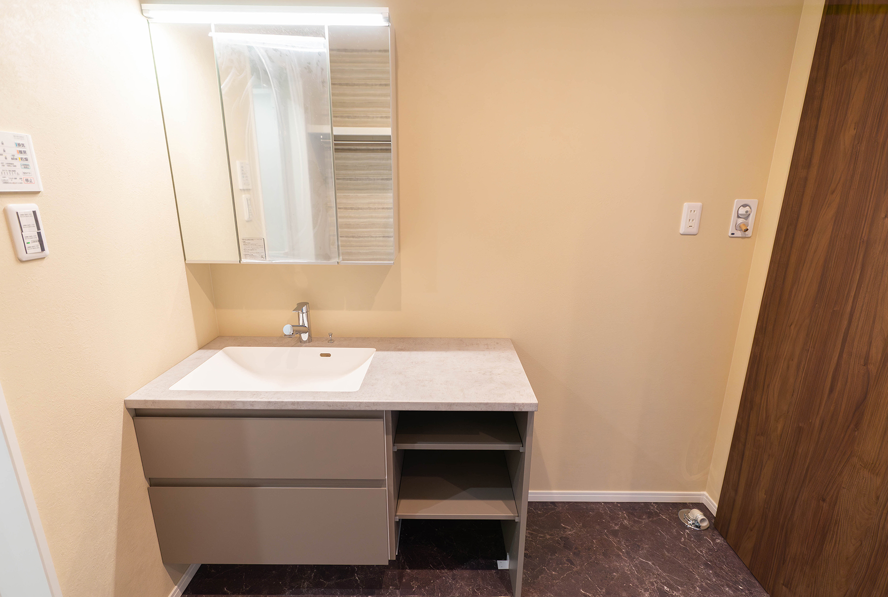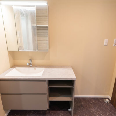 ワイドな洗面台で、朝の準備も快適に。