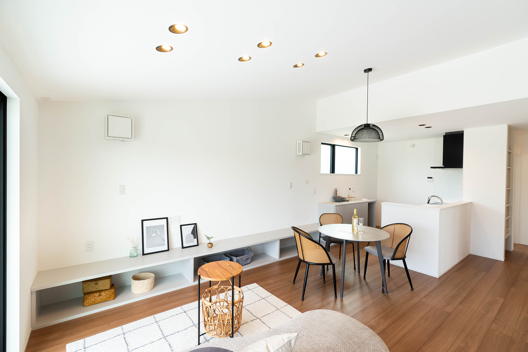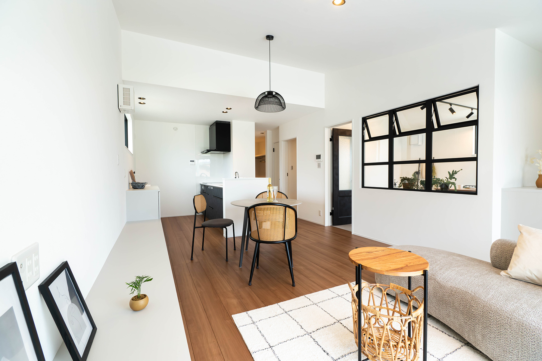 窓から差し込むやわらかな光が、時間とともに表情を変え、朝は清々しく、夕暮れには落ち着いたぬくもりを演出します。