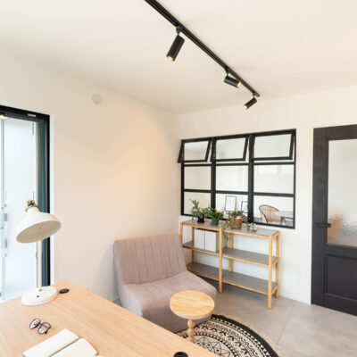 リビングのすぐ隣にあるアトリエは、外部ともつながり、明るい光が差し込む心地よい空間。