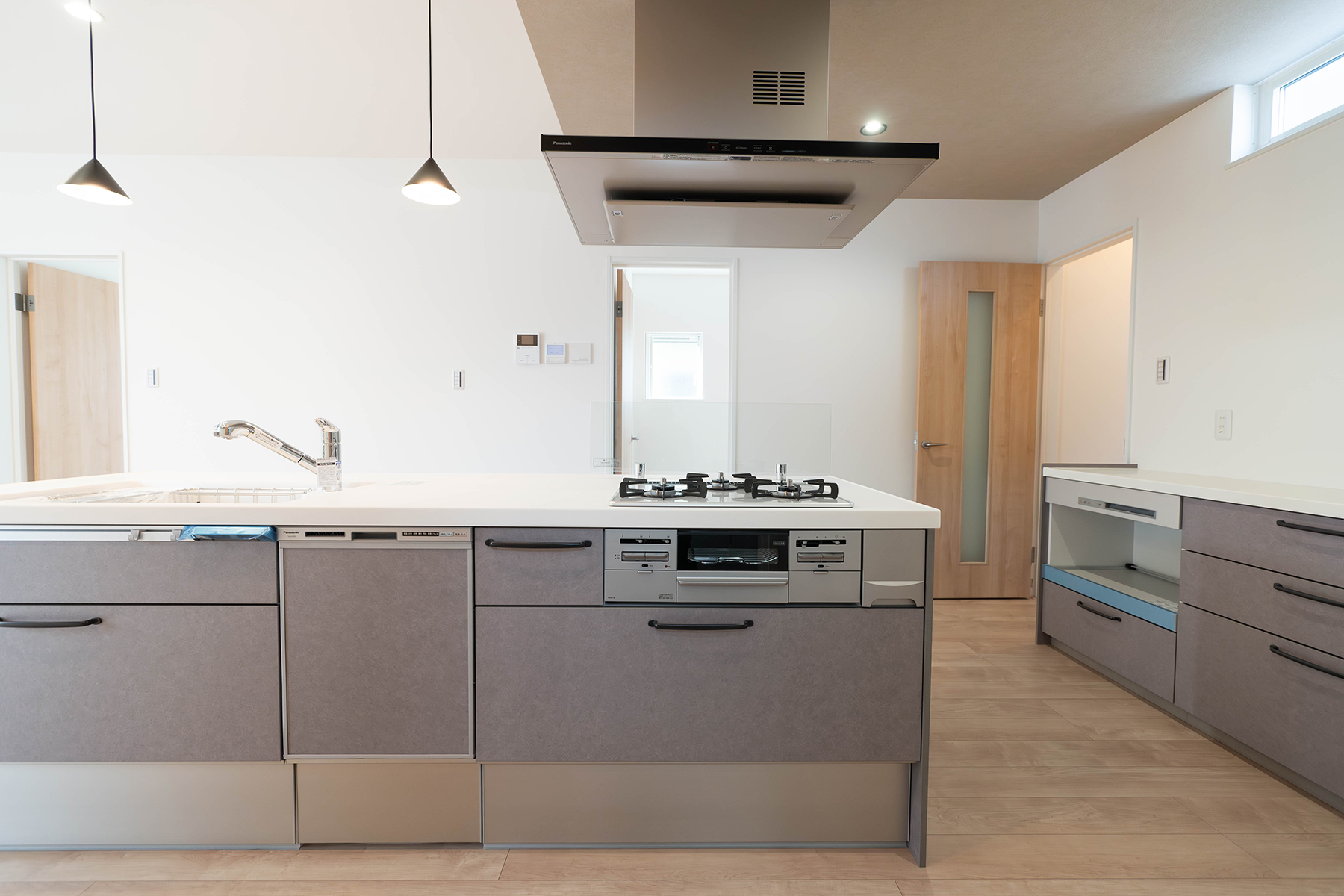 アイランドキッチンはパナソニックのラクシーナを採用し、たっぷりと収納できます。