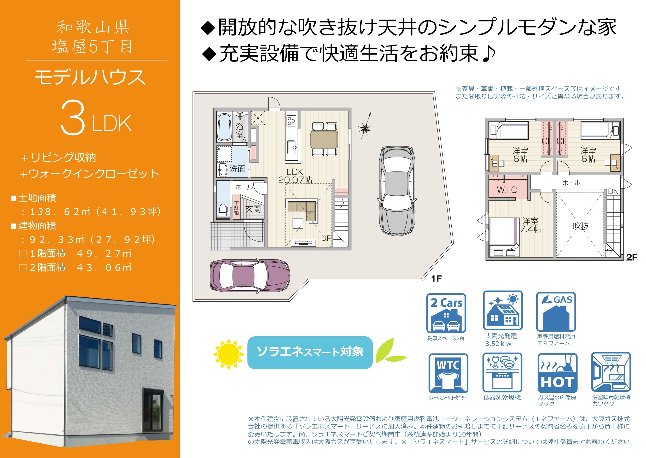 太陽光パネル・エネファーム・ヌック(床暖房)・カワック(浴室暖房乾燥機)も完備した充実の設備。
