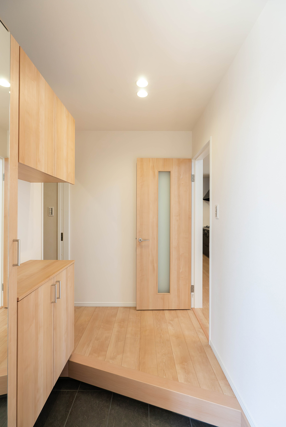 玄関には屋根があるので雨の日でも濡れずにすむのが嬉しいポイントです。