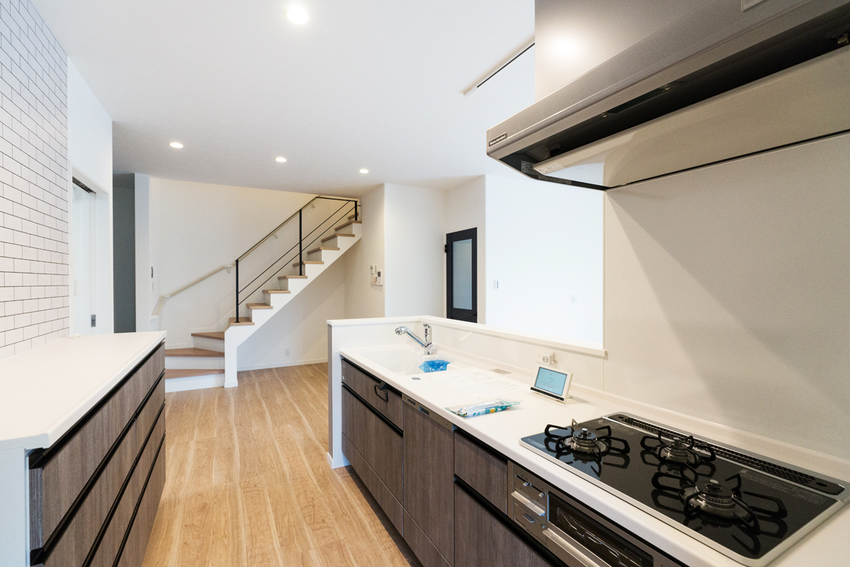 木目を取り入れることで、モダンながらも柔らかな雰囲気を演出しています。