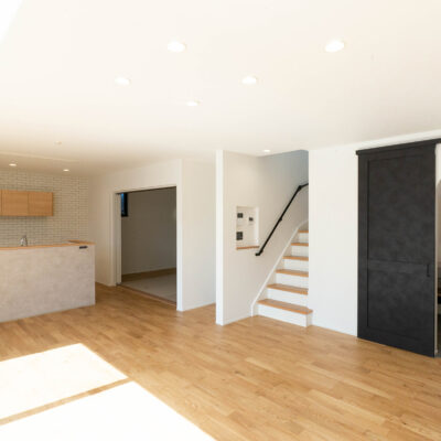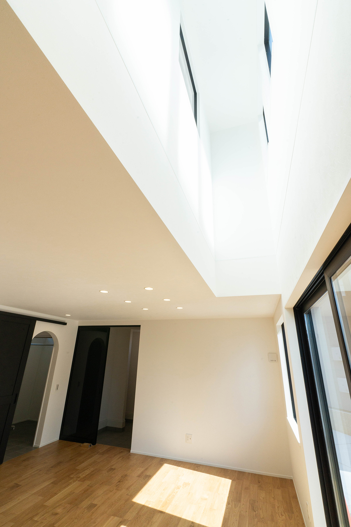 S様邸 大きな窓から光が差し込む明るく心地よいリビング。こだわりの内装が映える邸宅