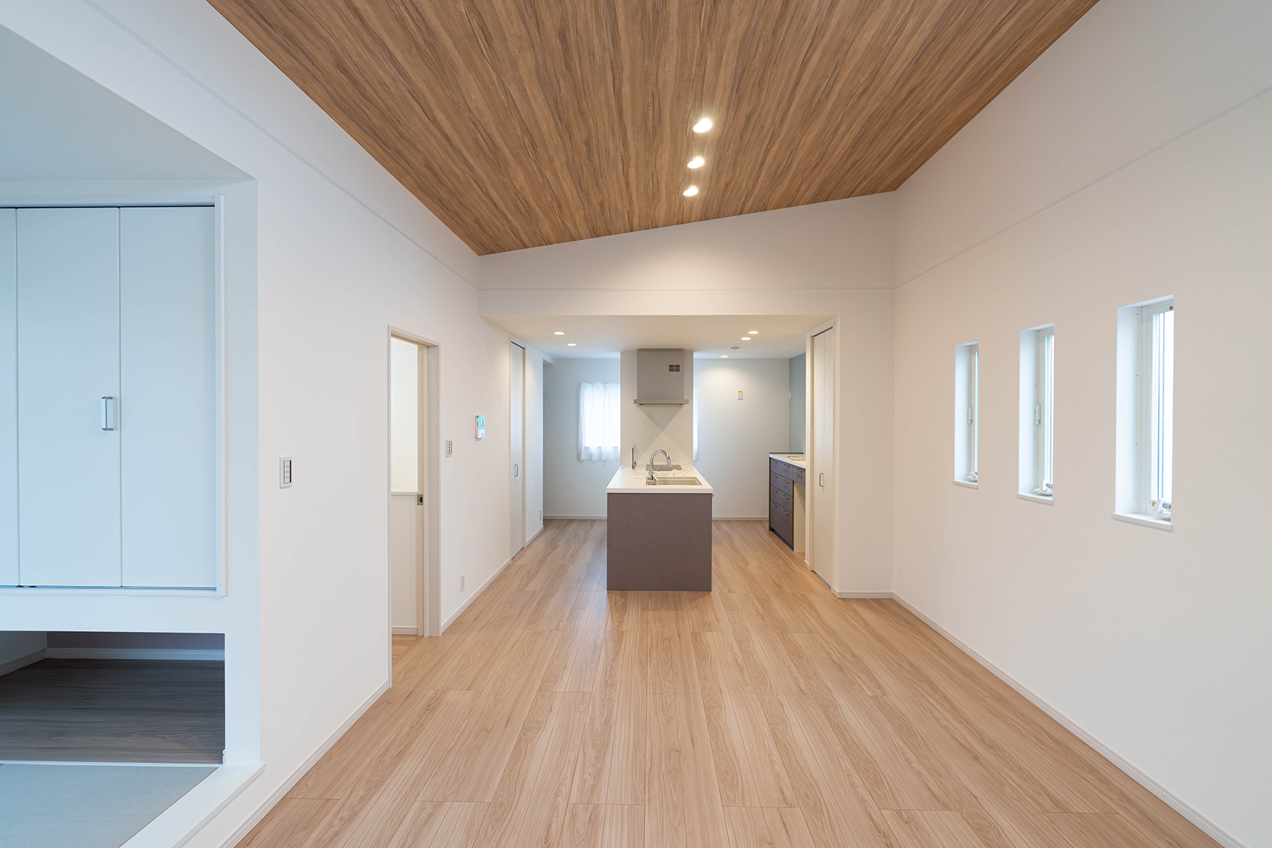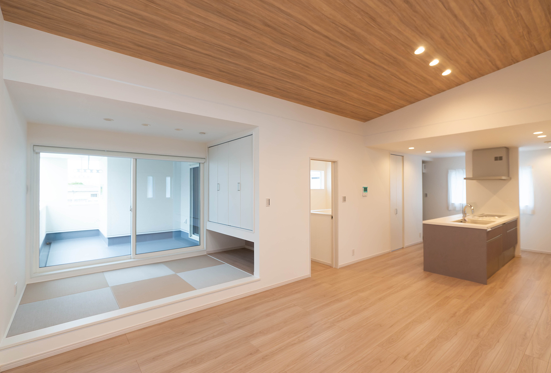 勾配天井を取り入れたことでより明るく開放的な空間に仕上がりました。