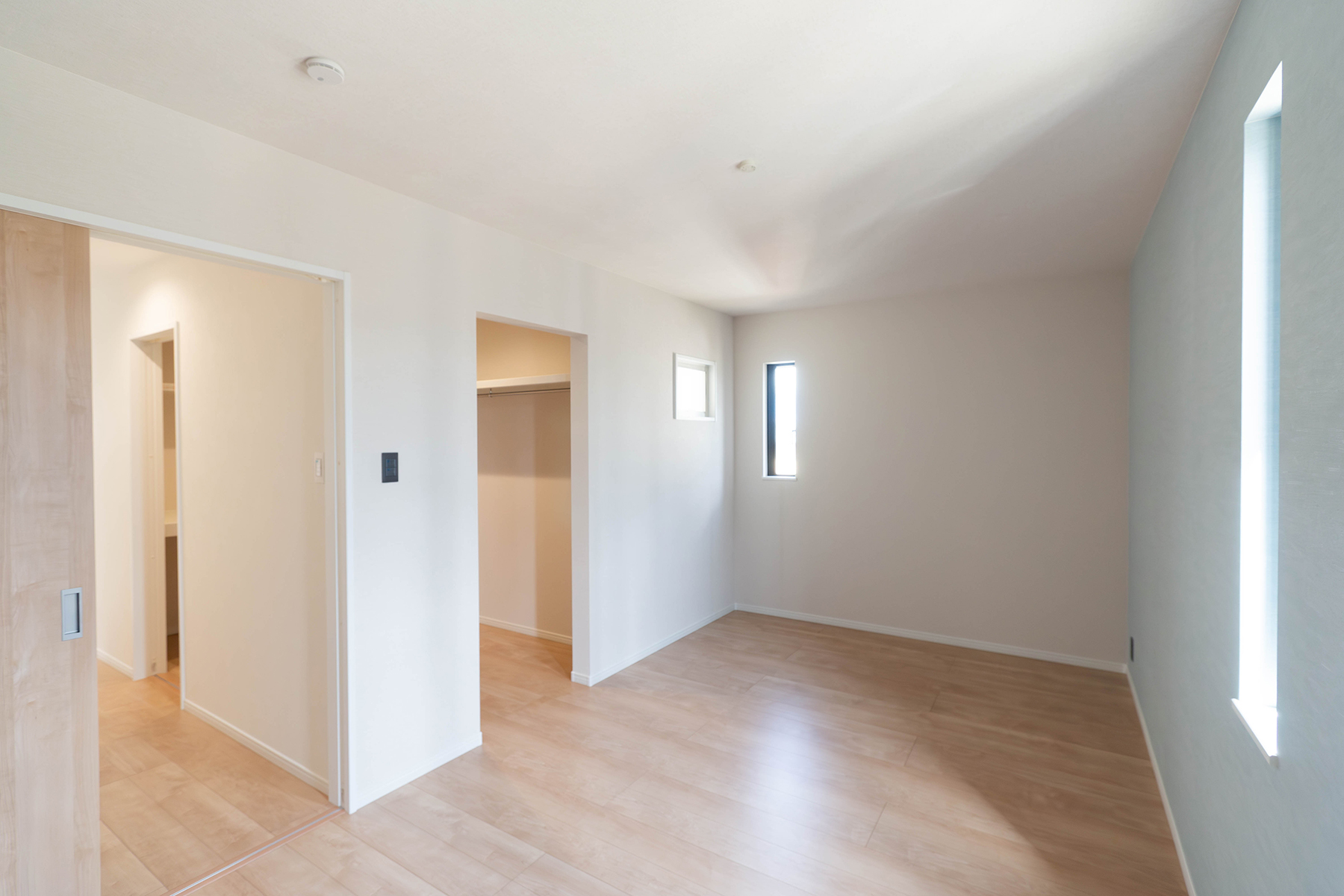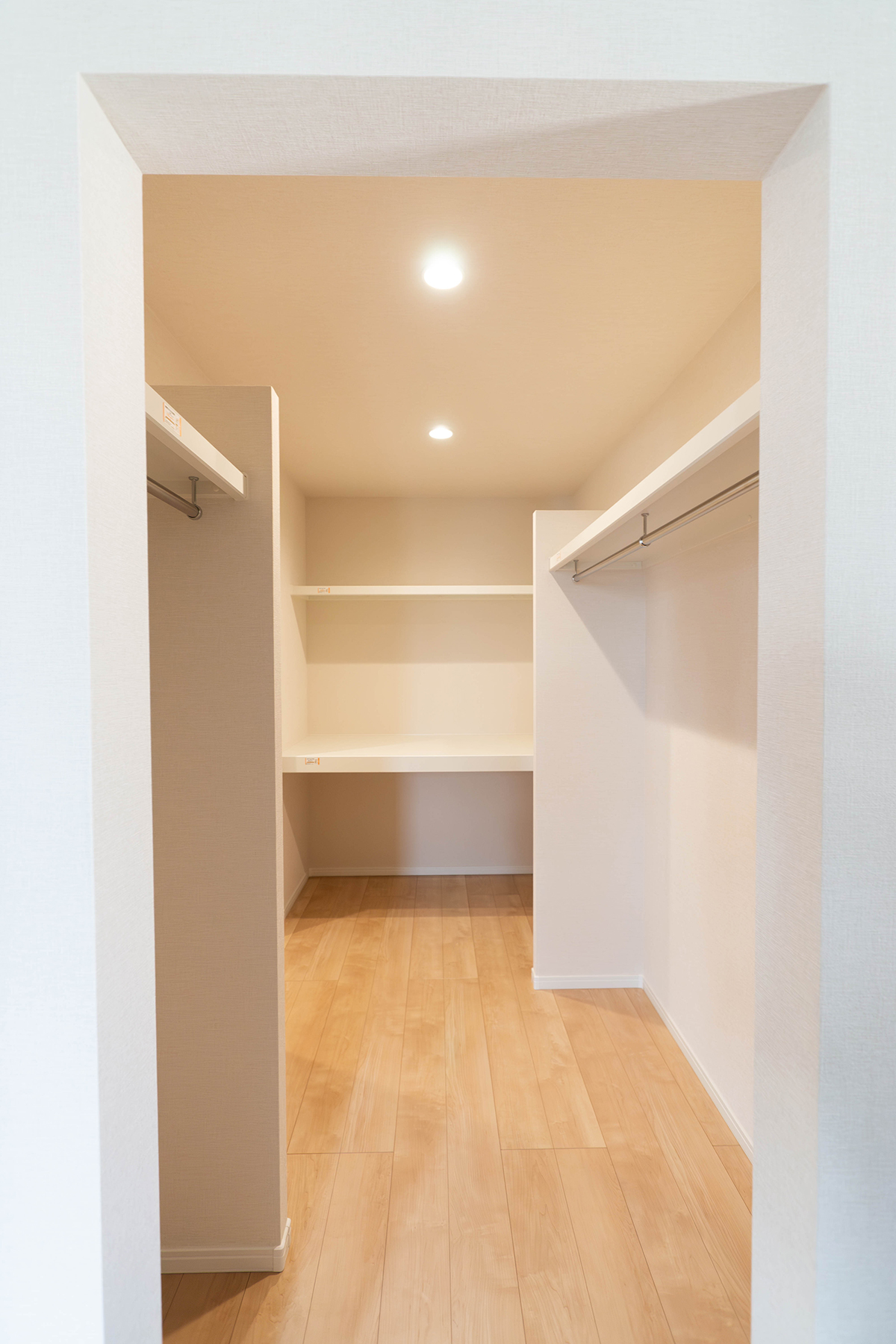 寝室と廊下の両方から出入りできるウォークインクローゼットは使い勝手抜群です。