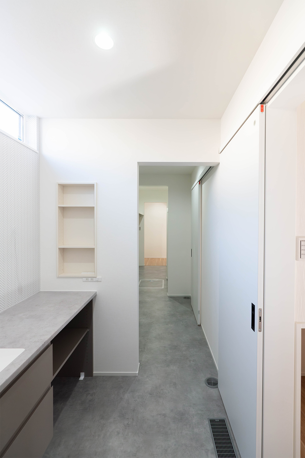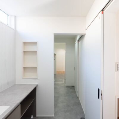 玄関ホール・リビングのどちらからもアクセスできる直線的な水回り動線により、家事効率を高め、忙しい朝の支度も快適に行えます。