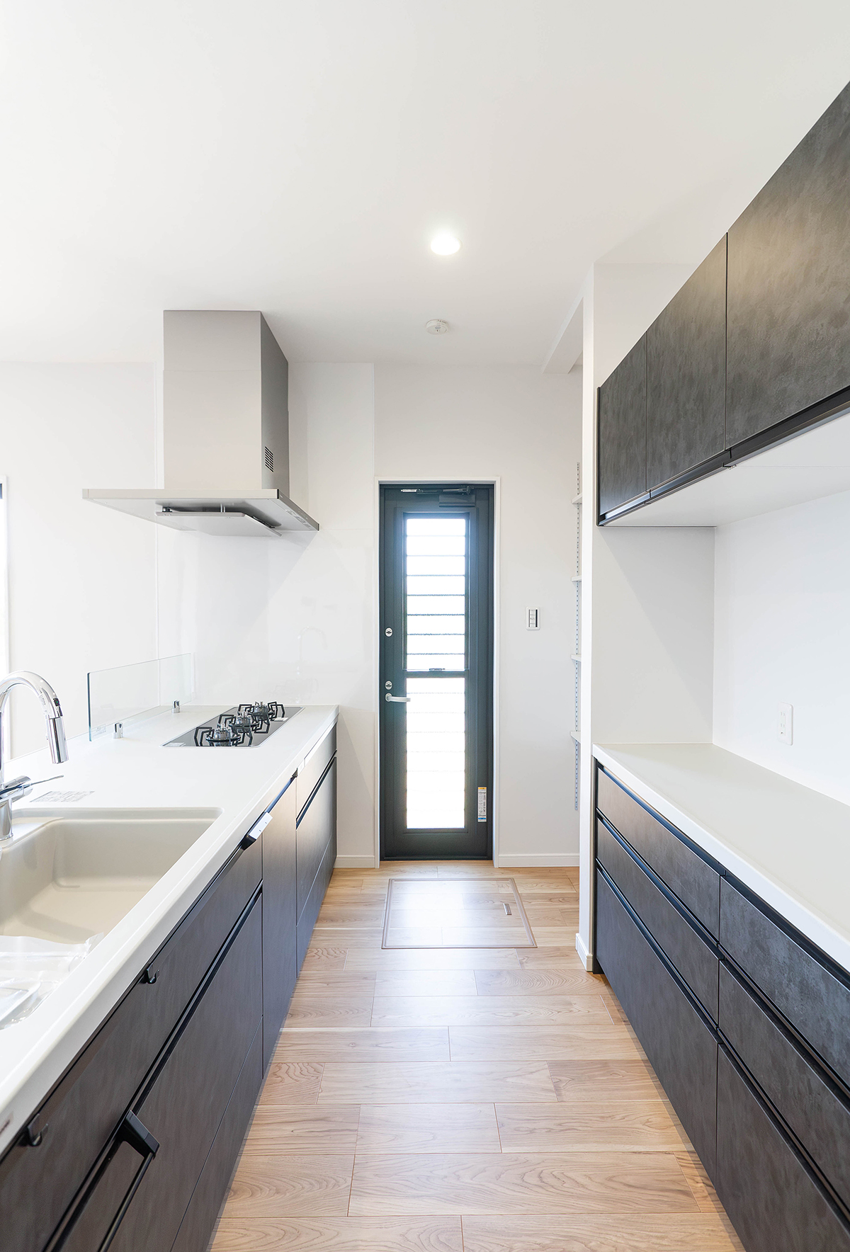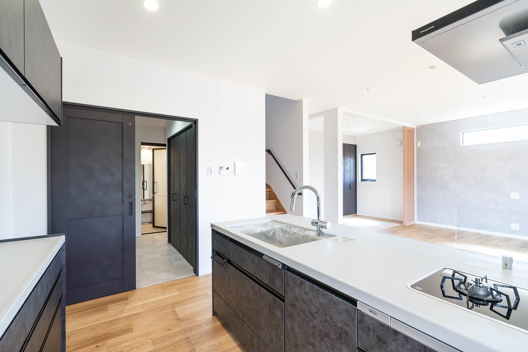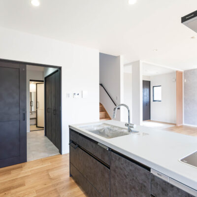洗面室と脱衣室を完全分離し、入浴中でも他の家族が気兼ねなく洗面台を使用可能。